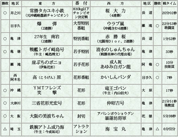 | 830kg以下軽量級優勝旗争奪戦 | ||||||||||||
